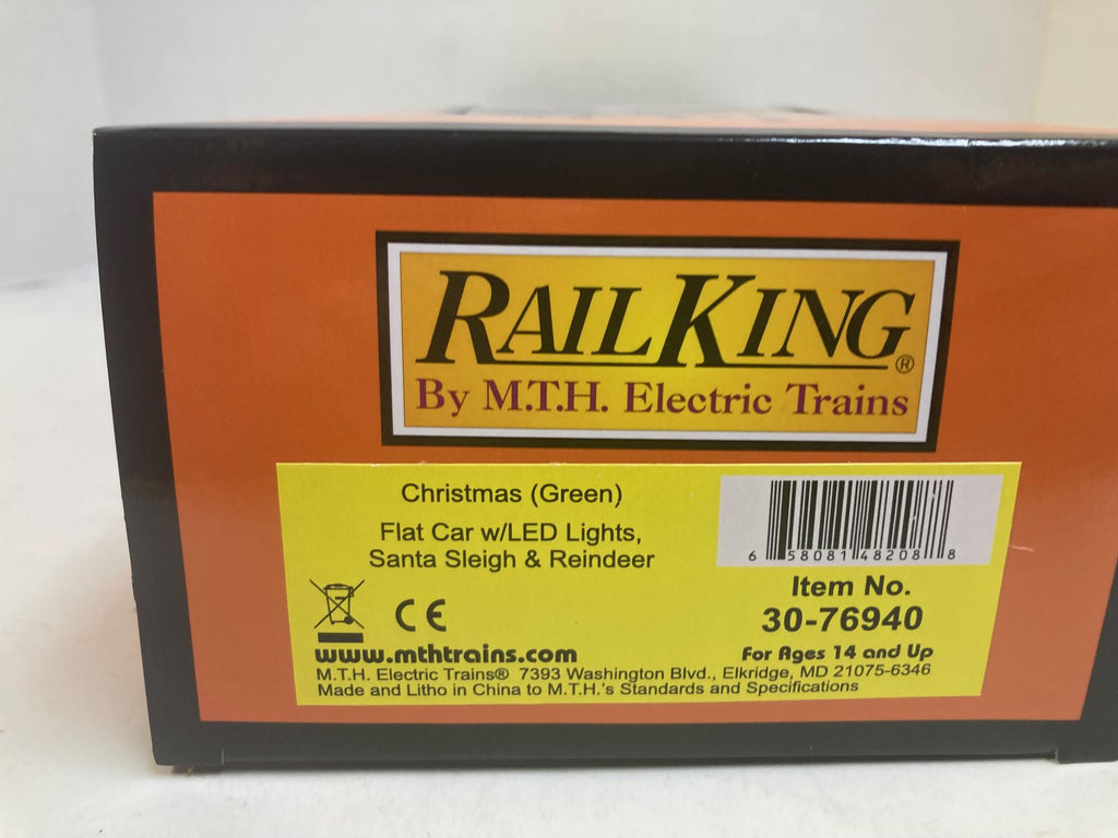 MTH Christmas Green Flat Car w/ LED Lights – Santa Sleigh & Reindeer 30-76940 – O Gauge Holiday Train