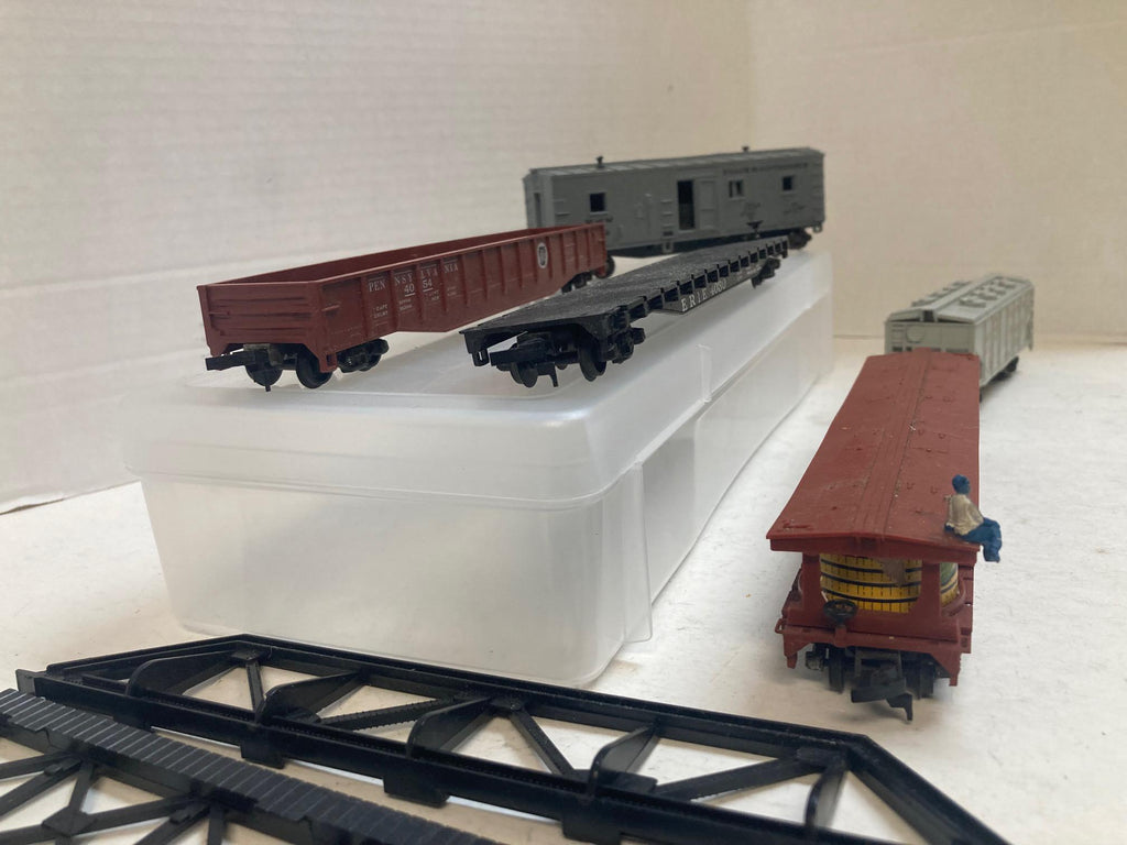 Revell HO Electric Train Set Incomplete – 5 Freight Cars & Bridge Parts – No Engine – Used Good Condition