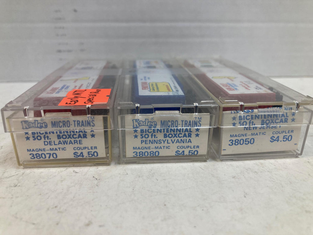 Kadee Micro-Trains Bicentennial 50’ Boxcar 3-Pack – Delaware 38070, Pennsylvania 38080, New Jersey 38050 – N Scale LNIB