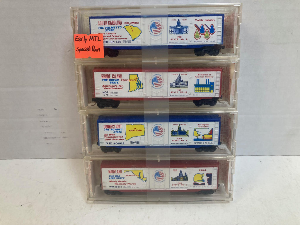 Kadee Micro-Trains Bicentennial 50’ Boxcar 4-Pack – SC 38110, RI 38030, CT 38020, ML 38060 – N Scale LNIB