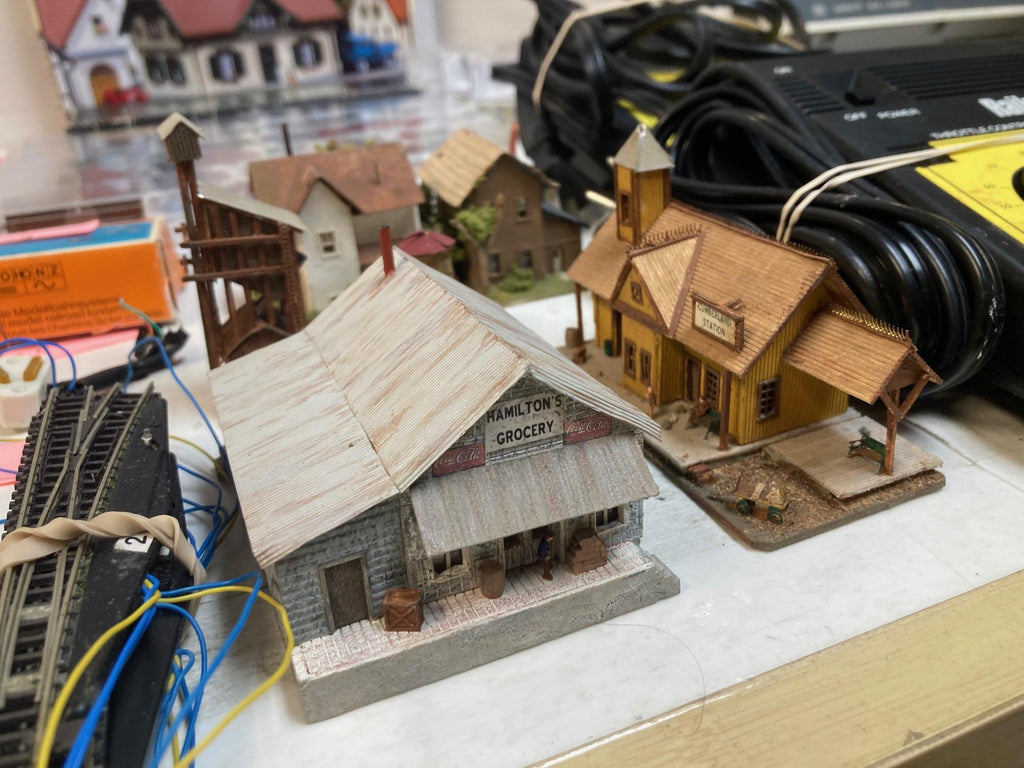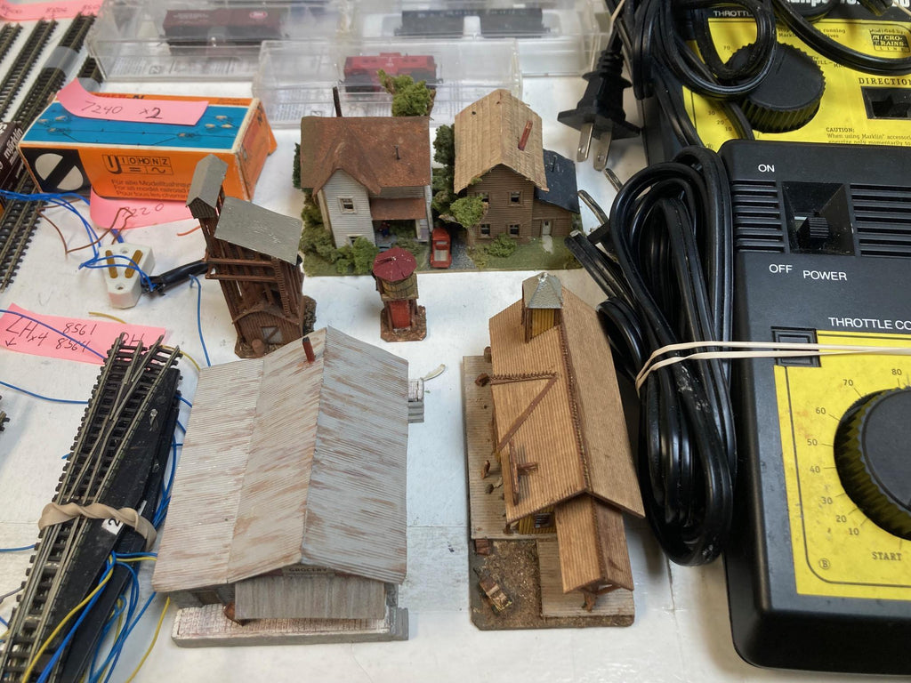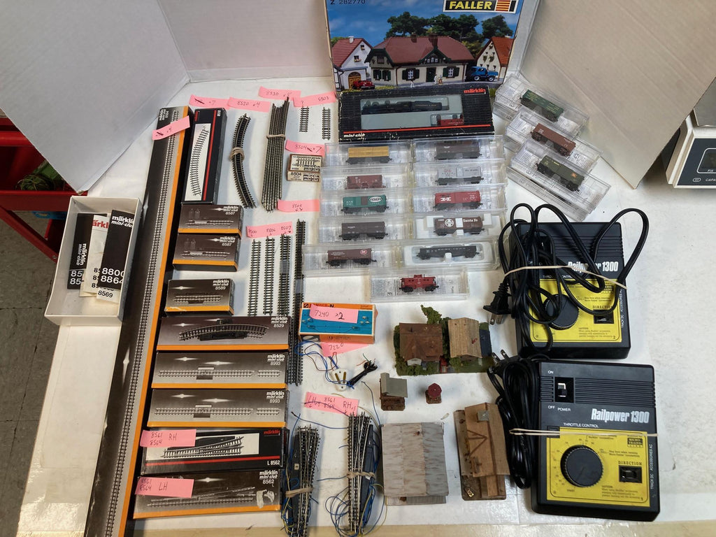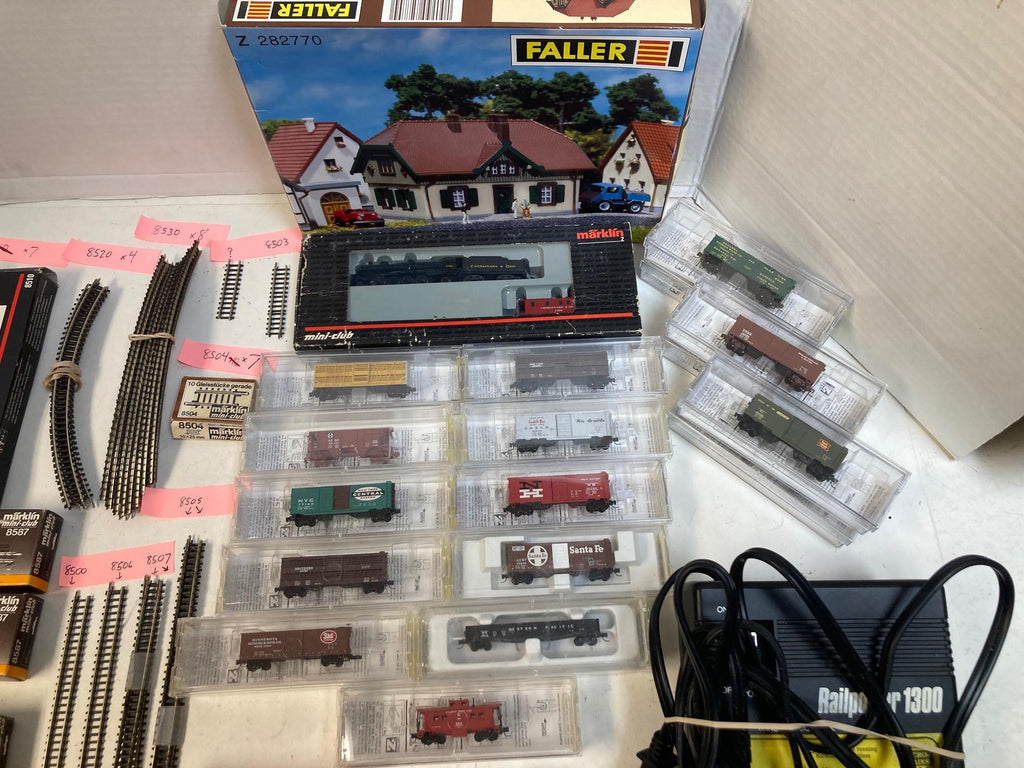 Z Scale Lot: Märklin 88812 Steam Loco + 17 Micro-Trains Cars, Track, Switches, Power, Buidings
