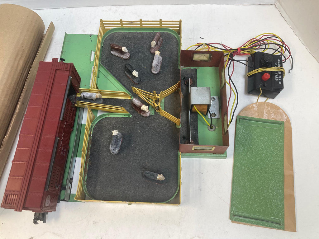 American Flyer K771 Operating Stock Yard & Stock Car Tested Works w/ 8 Cows + Box