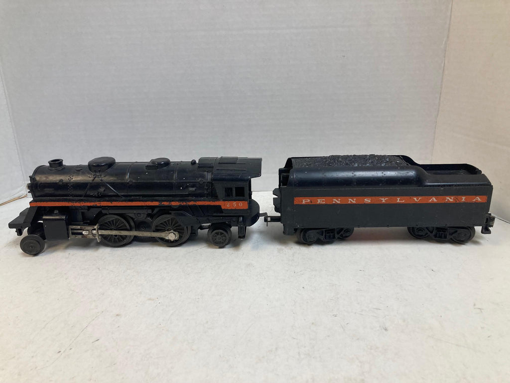 Lionel 250 2-4-2 Steam Locomotive with Matching Pennsylvania Tender (Orange Stripe) – Early Postwar (1945–1946)