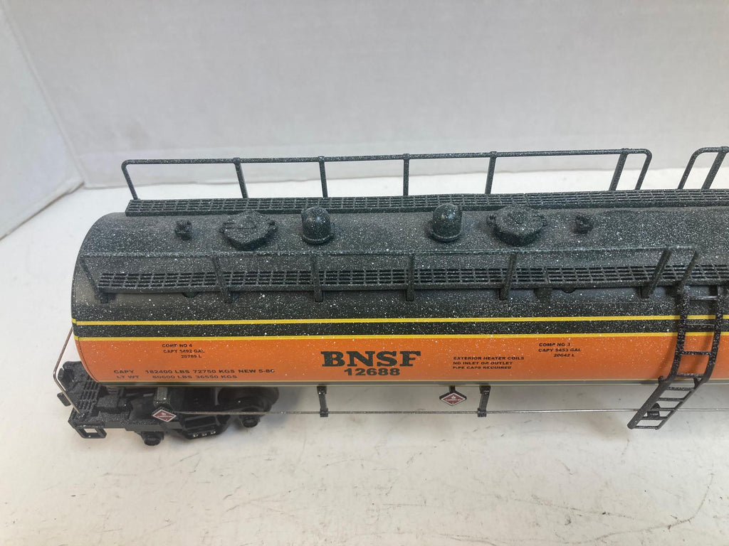 MTH 12688 BNSF 20K Gallon 4-Compartment Tank Car – O Scale – Pre-Owned Snow Weathered Finish