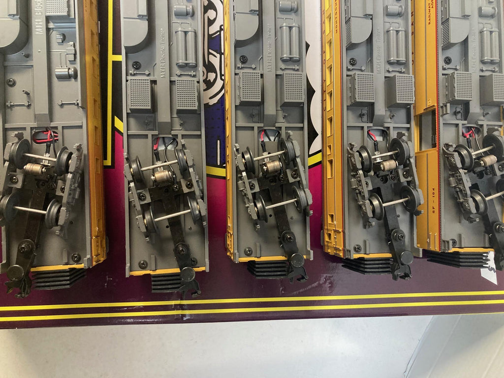 Please review the photos carefully to see the condition of the rollers and the car bodies. This is a great-looking, complete consist for any operator's layout.