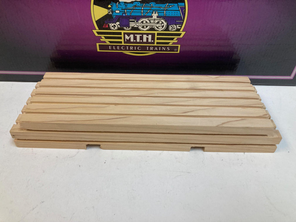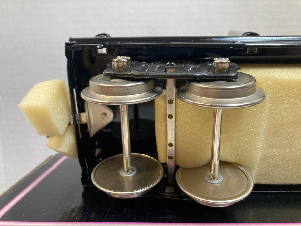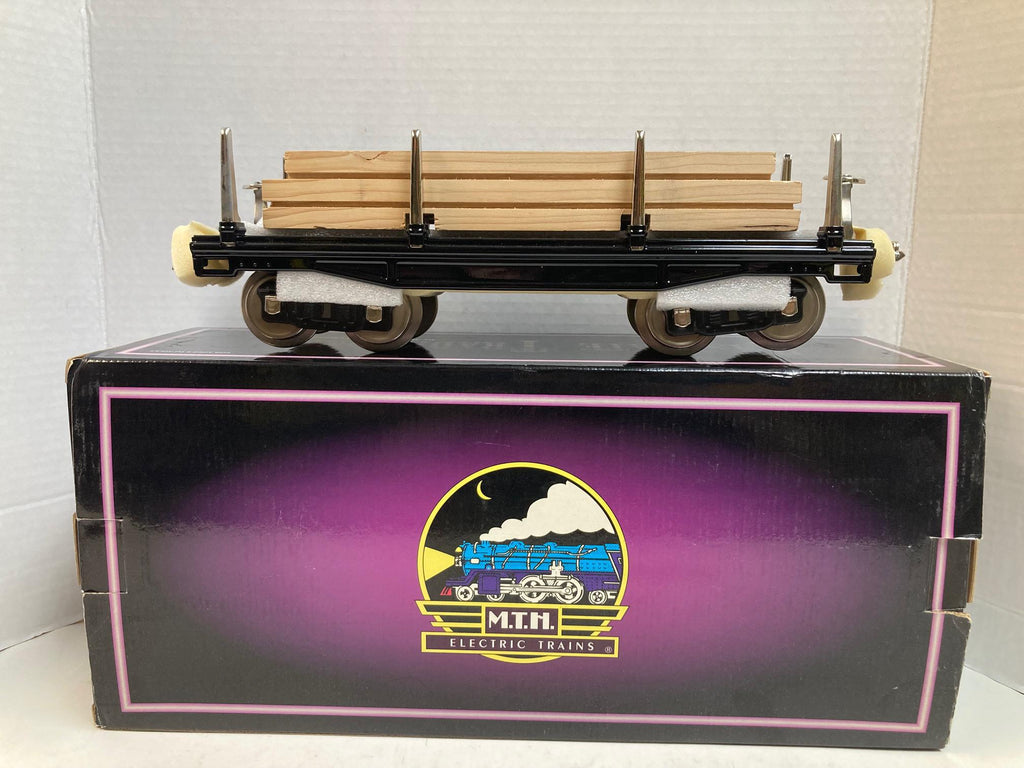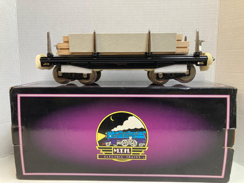 MTH Tinplate Traditions No. 211 Flat Car 10-1071 – Black w/ Nickel Trim & Authentic Wood Load – NOS
