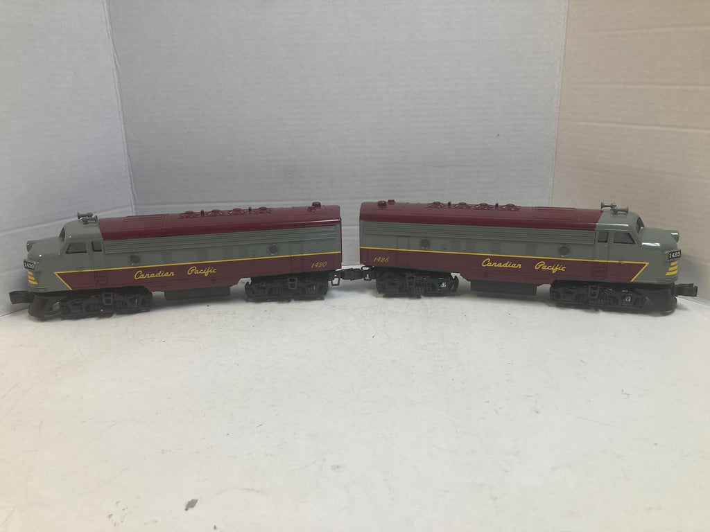 Williams Canadian Pacific F7 AA diesel locomotive set — includes the powered #1420 unit and matching dummy unit #1425. No Sound. Great set for collectors or operators.